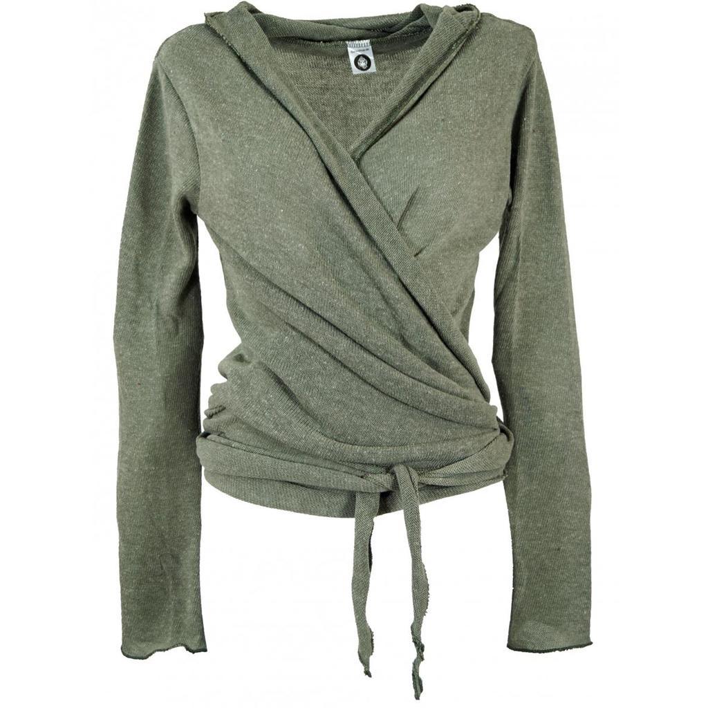 Wickelshirt, Baumwollstrick Pullover, Wickeljacke - helles khakigrün