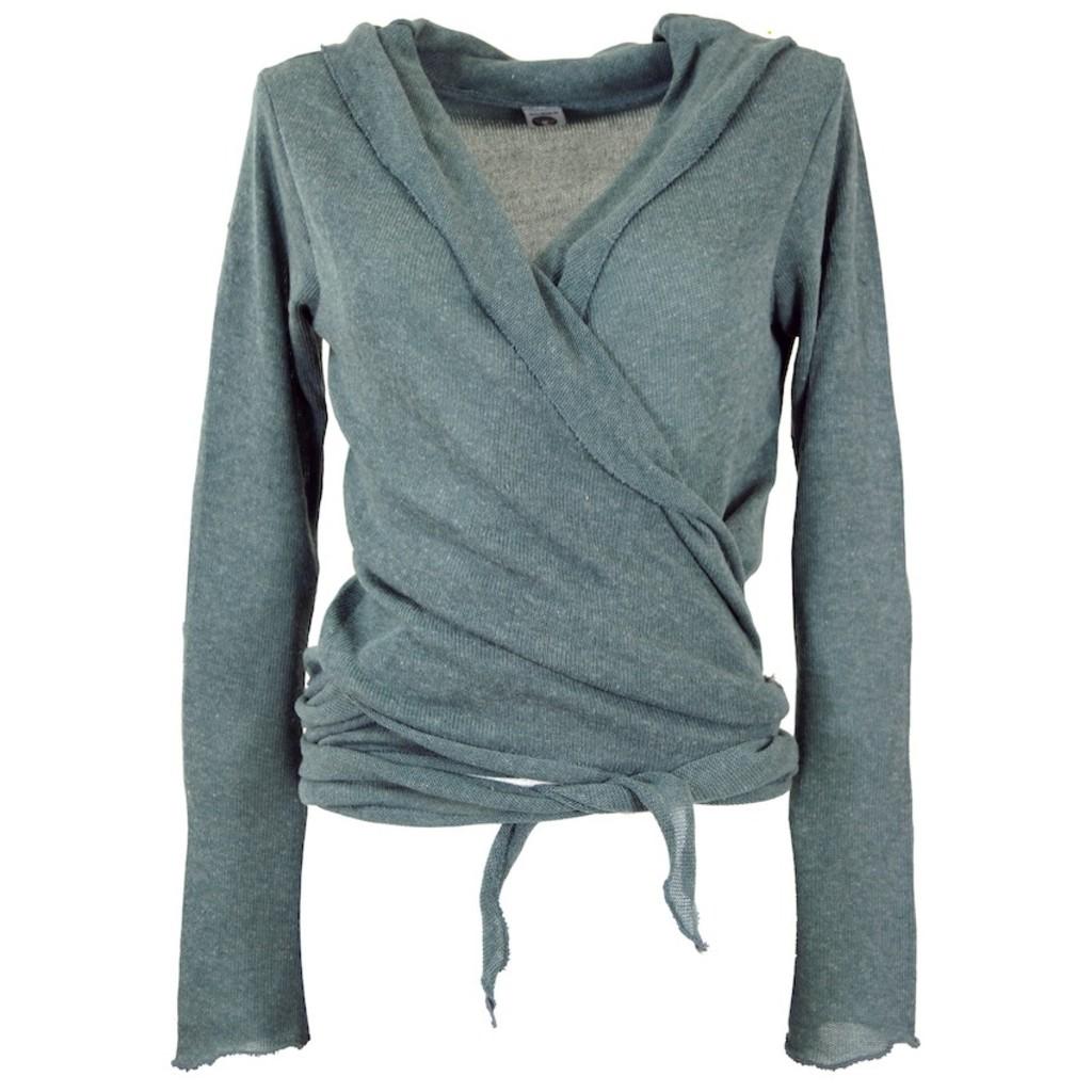 Wickelshirt, Baumwollstrick Pullover, Wickeljacke - taubenblau