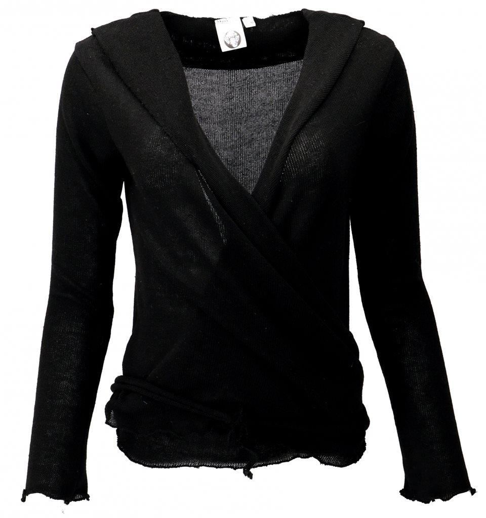 Wickelshirt, Baumwollstrick Pullover, Wickeljacke - schwarz