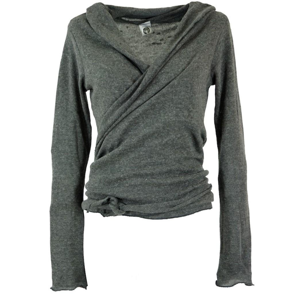 Wickelshirt, Baumwollstrick Pullover, Wickeljacke - granitgrau