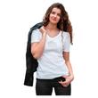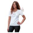 Dieses bequeme T-Shirt mit abgerundetem V-Ausschnitt besitzt einen schönen ‚Lotus’-Print aus silber/gold und Kristallsteinchen. Der feine Interlock-Stoff aus Baumwolle trägt sich einfach wunderweich auf der Haut und die modisch gerafften Schultern sorgen für eine wundervoll elegante Optik. Der Stoff wurde mit mikrofeinem Turmalin versetzt.
