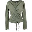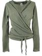 Figurbetontes Strickshirt zum Wickeln. Je nach Belieben kann man das Shirt aus weichem, natürlichen Baumwollstrick vorn, hinten oder seitlich binden.